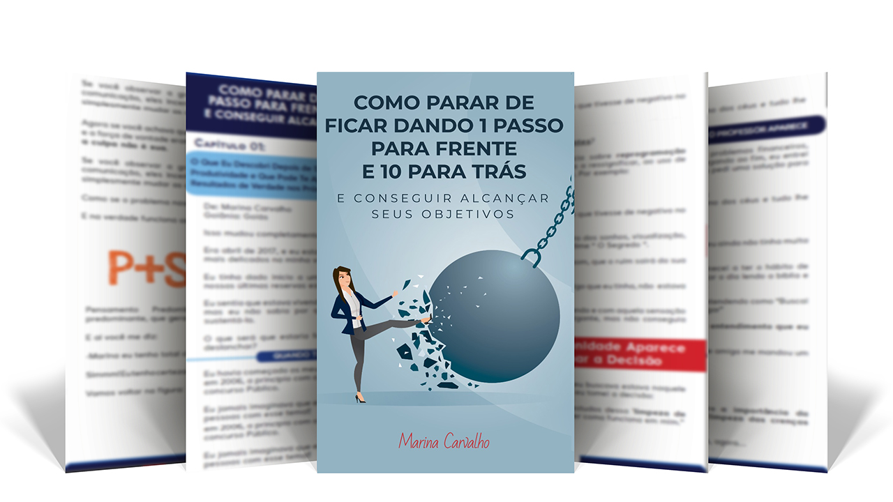 Foi por isso que nós criamos o E-book "Como Parar de dar 1 Passo para Frente e 10 para Trás e Conseguir Alcançar seus Objetivos com MUITO MAIS VELOCIDADE e de forma leve, sem sacrifício"